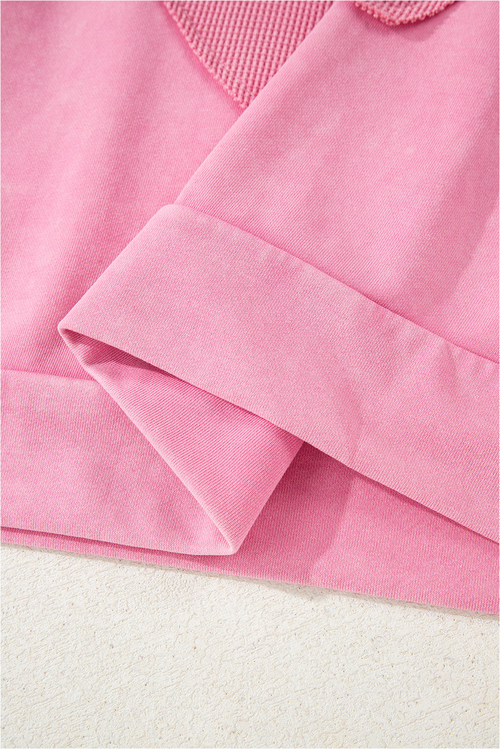 Bonbon Waffle Bowknot Patchwork Graphic Mineral Wash Plus Size Sweatshirt